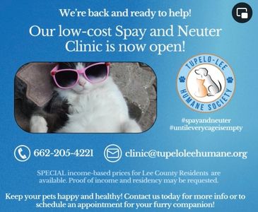 Low cost cat spay and neuter program for low income pet owners and feral/unsocialized homeless cats of north MS. Call (662) 292-0922 for more information or to see if you qualify. Leave a voicemail detailing your request for discounted pricing and include if the cat(s) you’re seeking assistance for are pets or ferals.
